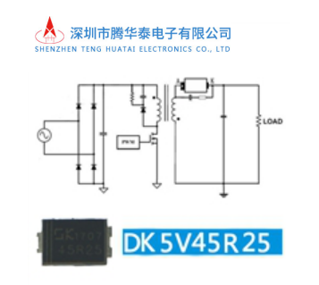 DK5V45R25是同步二极管芯片。芯片内部集成了45V功率NMOS管,可以大幅降低二级管导通损耗,提高整机效率,取代或替换目前市场上等规的肖特基整流二级管。